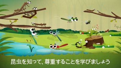 • 数々の学習ゲーム:自分だけの虫を作る、養蜂家に防護服を着せる、ナナフシを見つけよう、チョウチョの一生など ...