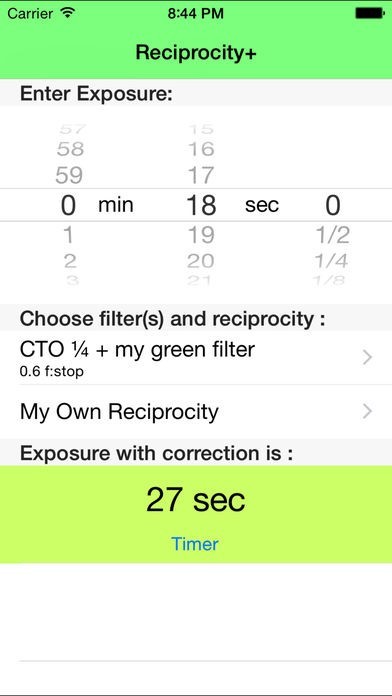 • A timer, of You can quit the app, no matter what you do, the timer will notify you when the exposure is over.