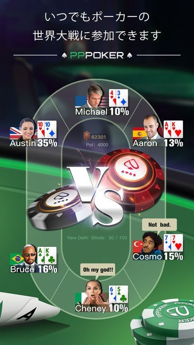 普通のポーカーだけでなく、テキサスホールデムなどの複数の対戦形式を選ぶことができます。オンライン対戦で世界を相手に戦い、上を目指していく事も可能となっております。
