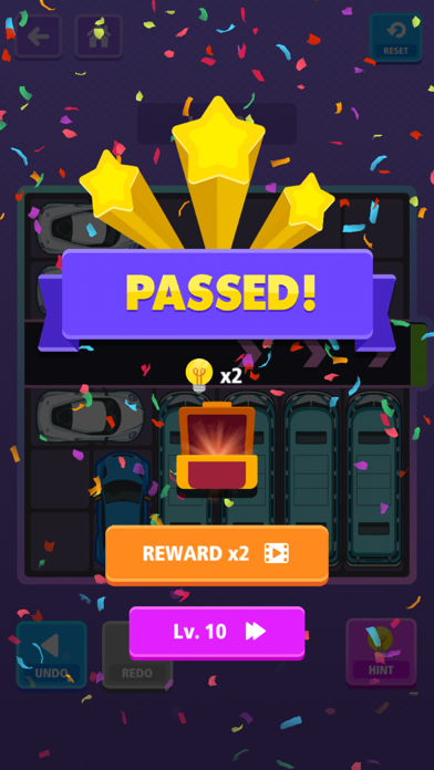 どうしてもクリアできない人のためにヒント機能を用意しました。また、このゲームには制限時間は存在せず、車は何回でも動かすことができます。さらに、タップ一つでスタート時の状態に戻せるので便利です。