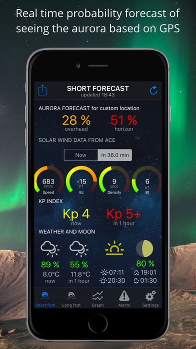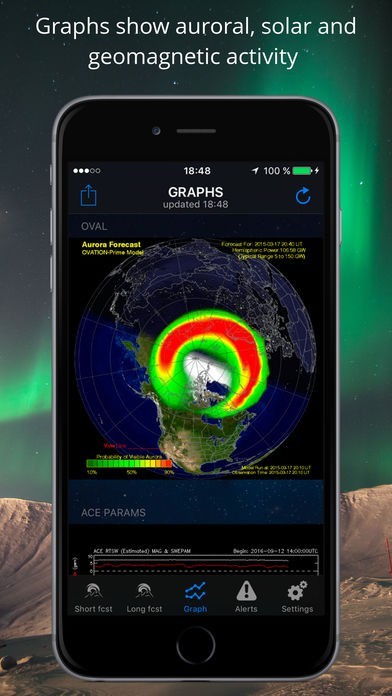 Northern Lights Forecast & オーロラ Alertsはオーロラ観測に役立つアプリで、太陽風データなど様々な指標からオーロラの発生を知らせており、地図上で確認できます。