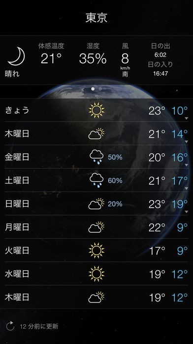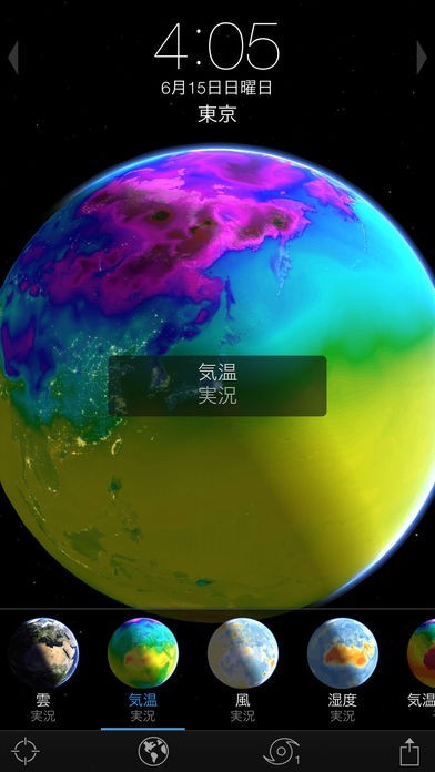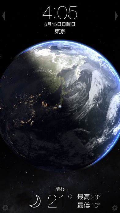 地球規模での天気の移り変わりがわかり、時計の機能もついていて、待ち受けに最適です。