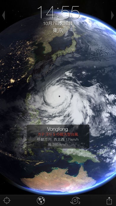 世界の気象情報を得られるアプリは結構ありますが、このアプリは美しい3Dライクなグラフィックで地球の雲の流れなど気象の有様をリアルタイムで見れるます。眺めているだけでも楽しいですね。