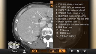 ずっとCTやMRIの画像を眺めていると眠くなってしまいがちです。そこで、臓器の名前が隠されているクイズ形式で知識を確かめてみましょう。2種類のクイズモードが用意されています。