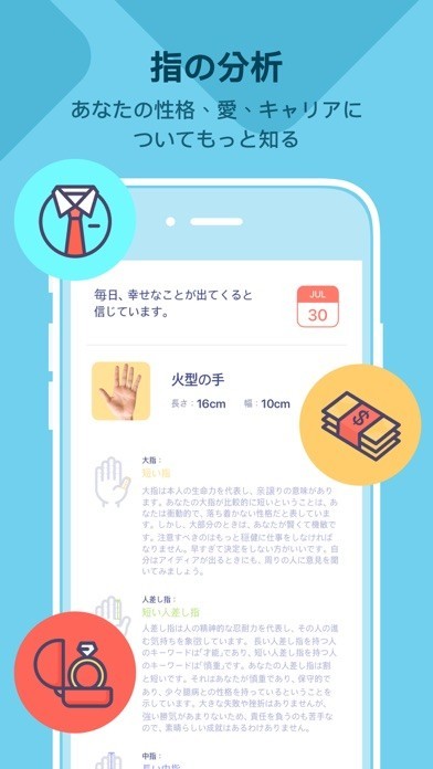 AI手相占いでは正確な占いで、有意義なアドバイスをしてくれます。手指の占いでは個性を分析して生活のアドバイスをされ、手の分析では手の長さや幅から隠れた秘密を知ることができます。
