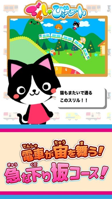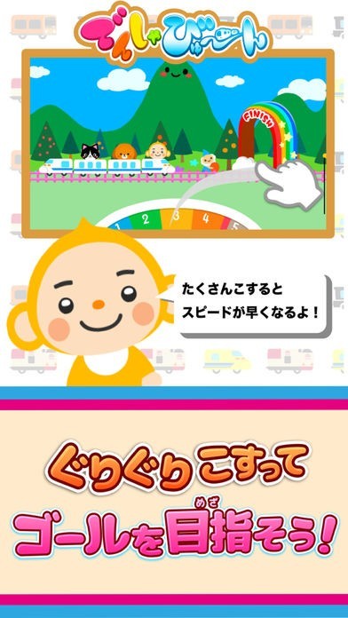 可愛い絵柄の電車を、画面をこするだけで動かすことができます。途中にお客さんを乗せたり、飛んだり跳ねたり回ったりと面白い動きで走りながらゴールを目指します。小さい子供から遊ぶことができるゲームです。