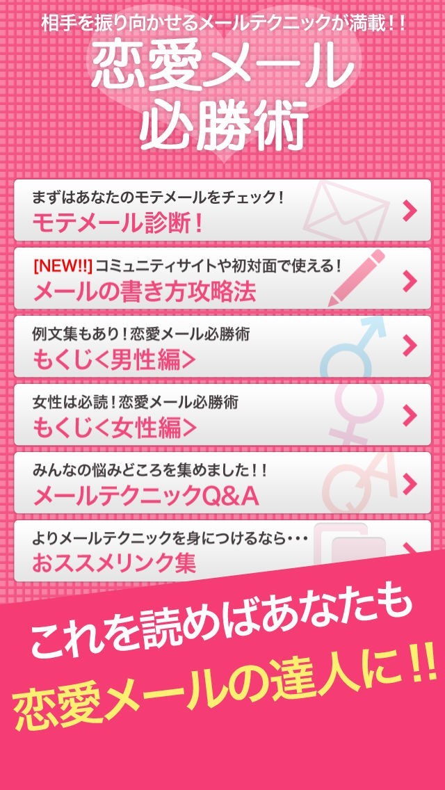 App Storeより引用恋愛で相手を振り向かせるメールテクニックが満載!!