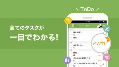 ToDoリストの作成に対応していて、予定を一元管理出来るようになっています。また「メモ」機能から文字の追加や写真添付が行えるため、ビジネスやアイディアの整理にも役立つでしょう。