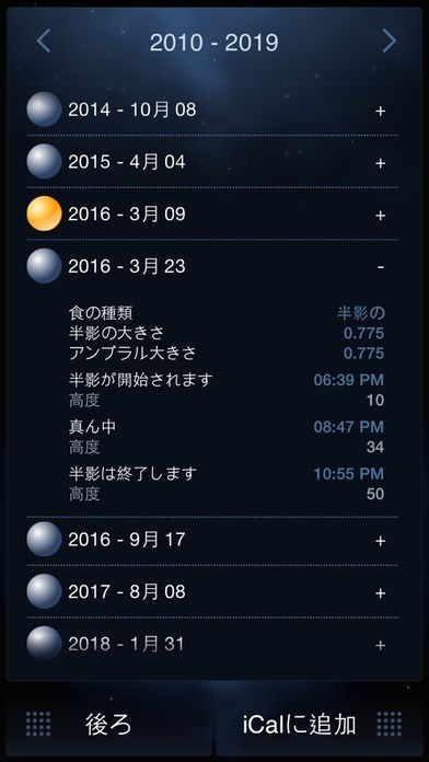 ネット回線を利用しないで月の情報が手に入るため、山奥や田舎で月を観測したい人にとっては非常に便利です。月の標高も表示されるため、海と山から計測した場合の相違は面白いです。