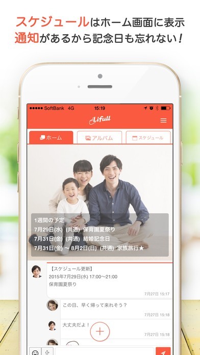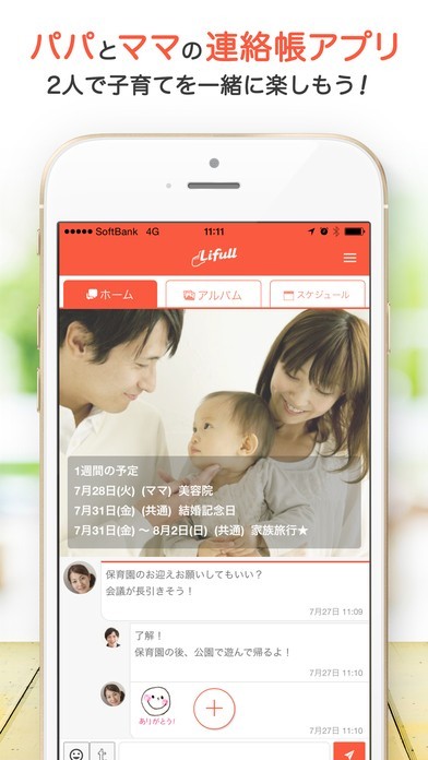パパとママのための子育て連絡帳アプリ。子供の写真やスケジュールをシェアできる育児には欠かせないコミュニケーションアプリです。家族で共有したい写真アルバム、スケジュール機能、メッセージ機能などが無料でup出来るのでとても便利です。学校行事や保護者会・予防接種などうっかり忘れやすい予定を管理して、パパやママにスケジュールを知らせることが出来ます。お子様やご夫婦の誕生日や結婚記念日も登録してお知らせしてくれるのでたのもしいアプリです。