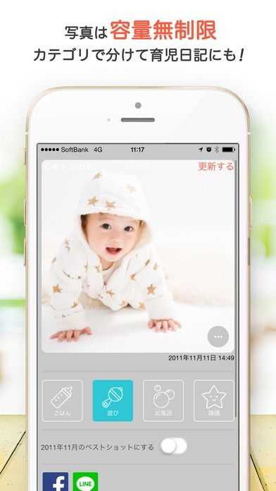 1日の子供の様子をカテゴリ別に分類し、にシェアして保存ができて便利