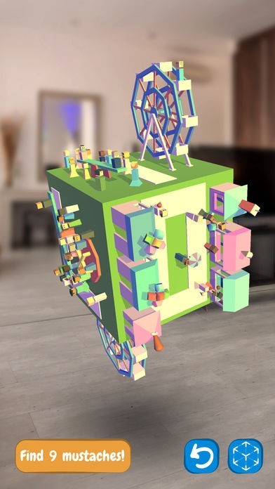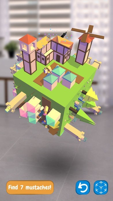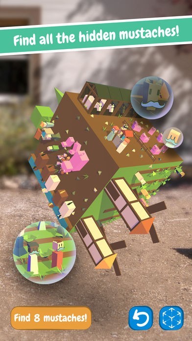 App Storeより引用Find the Mustache is an augmented reality "seek and find" game for the whole family! Using augmented reality (AR) technology, you can play "in your world" simply by pointing your device at any free floor space or table top. Can you find all the hidden mustaches? They might not be in the places that you expect! Move your device and walk around in 360 degrees to find them all.