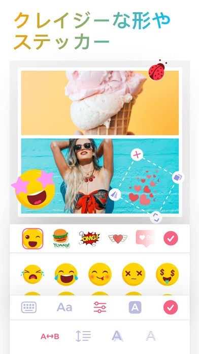 画像に複数のスタンプやステッカーを付け足す事が可能