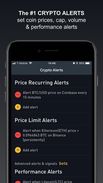 通貨ごとに一定価格に達したらアラートが鳴るようにすることができますし、時間ごとに価格を知らせるようにすることもできます。世界中の取引所に対応しており、機動的な投資を可能にします。