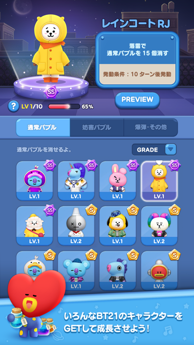 BT21のキャラクターたちにプレイを手伝ってもらうほか、その世界観をたっぷり楽しみましょう!