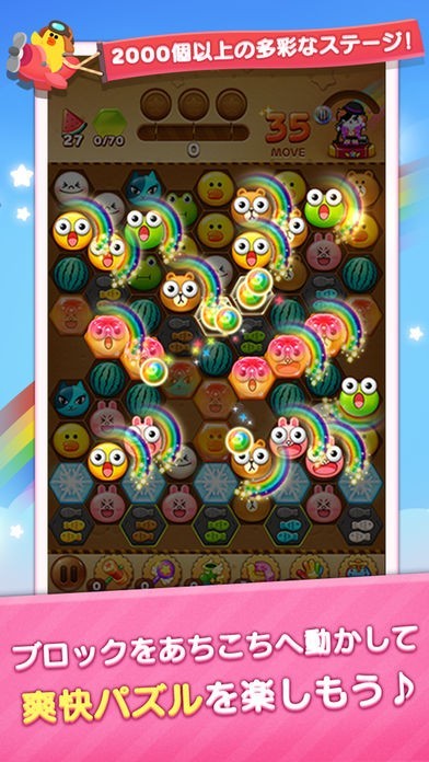 かわいいキャラクターと一緒に様々なステージで爽快なパズルが楽しめます。