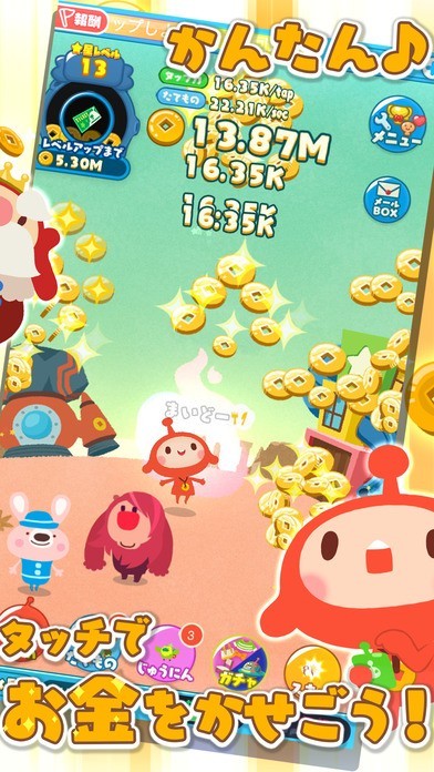 画面をタップしてお金を稼ごう!タップするほどお金はどんどん貯まっていくよ!