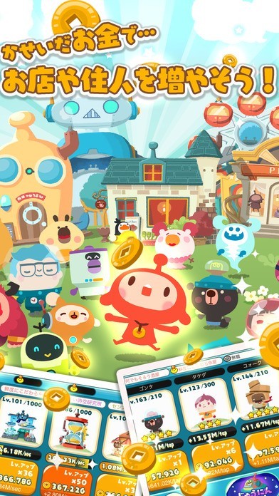 お金を集めていくと星レベルが上がってお店が増えて賑やかに!