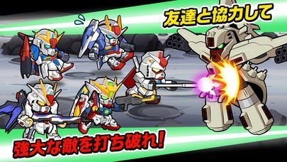 シンプルな操作で遊べつつ凝ったゲーム性が光る、機動戦士ガンダムの世界を舞台にしたバトルゲームです。プレーヤーのアクションやスキルの選択によってモビルスーツ達が激しい戦闘を繰り広げます。戦闘の経験によって戦力をパワーアップしていく育成要素も魅力で、パイロットとモビルスーツの相性などを考えながらパーティーを育てる楽しみがあります。