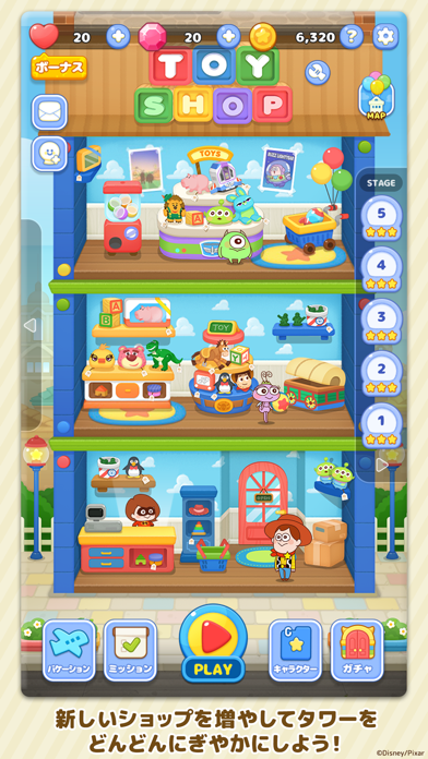 各ステージをクリアすることができると自分のショップタワーに新しいトイショップを開店することができます。お店が増えていくとタワー全体も発展させることができるのでゲームと合わせてタワー建設も楽しむことができます。
