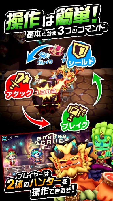 基本コマンドは、“アタック”、“シールド”、“ブレイク”の3つ。加えて、各ハンターが持つユニークコマンドを駆使して、ライバルチームからお宝を奪い取るのが最大の目的!