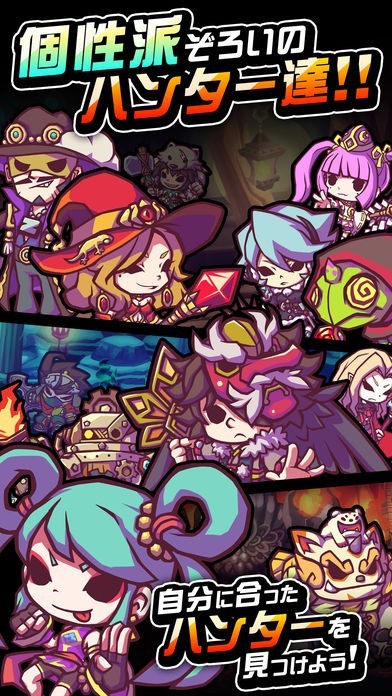 バトルで使用できるハンターは総勢30体以上! 報酬で入手できる“ゴールド”や“たましい”を集めれば新たなハンターが仲間に!