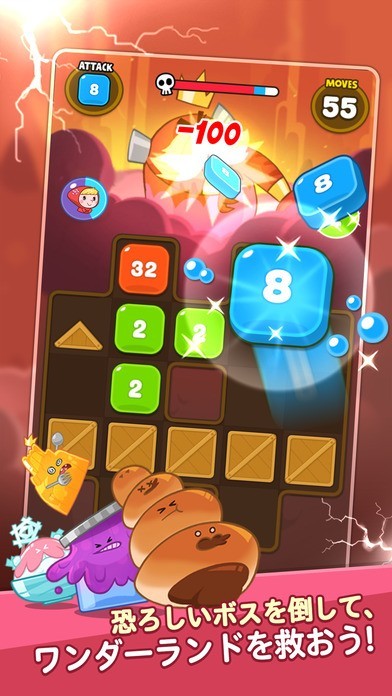 隣り合った同じ数字ゼリーをスライドさせて数字の大きなゼリーを作ろう!