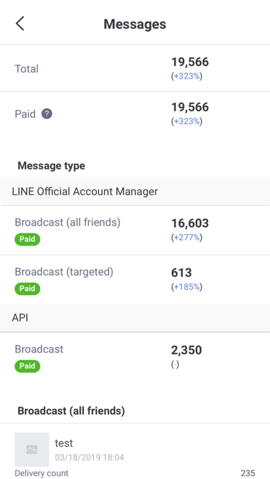 - 友だち数の推移やタイムラインに関する統計情報を確認できます。