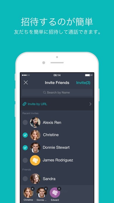 相手にURLを送るだけで招待できます。