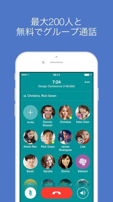 同時に最大200人と無料で通話できます。