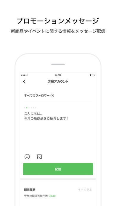 店舗を友だち登録したフォロワーにメッセージを送信できます。新商品情報やお得なプロモーションコードなどを配信して、集客数を増やすことができます。LINE Pay加盟店の申請は簡単に手続きできます。