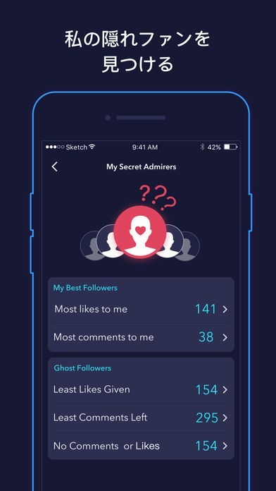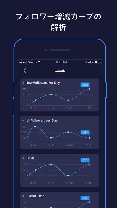 Instagram(インスタグラム)特化型として設計されており、アプリを介することで片思いフォローやフォロワーの管理が容易になります。定期的に投稿するユーザーはゴーストフォロワー対策に頭を悩まさせることもありますが、このアプリではいいねの反応を可視化してくれるため、簡単に判別を行うことが可能です。片思いも表示できますので、アンフォローの手間削減にも便利となっています。