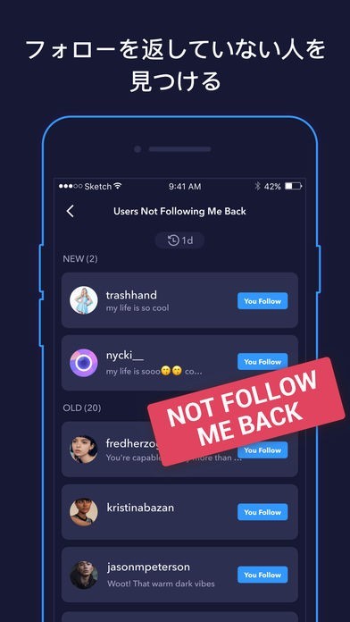 仕事が忙しいユーザーは投稿が滞りがちになり、せっかくのフォロワーをフォロー返しせずに放置、というシーンが多くなってきます。アプリの利用でフォロー・フォロバの判断がラクになり、休憩中のような少しの時間でも管理が可能です。