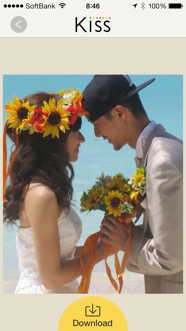 「Kiss」では、二人などの最少人数で写真をお互いに交換することができるようにしてくれます。 メールで写真を送信するというような手間をかけるような必要はなくなりますので、気軽に交換したりすることができます。 やり方は選択して右下の「Upload」を押すだけです。 もう片方の人も同じアプリを起動しておくと交換は完了してしまいます。 このような圧倒的なスピード感が魅力です。また、受け取る側は写真の下に表示される「Download」ボタンをタップするだけです。