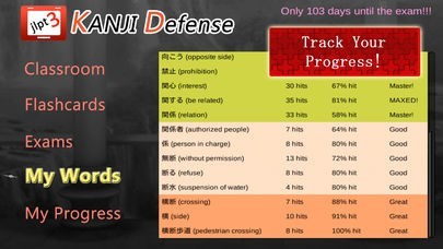 TEST YOURSELF on JLPT3 Japanese Kanji and also take exam-simulated tests all in the game!