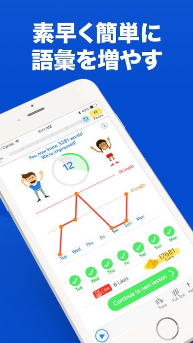 スマートフォンひとつで学習が可能なため、隙間時間を有効に活用したい方や、外出先でも語学を学習したい方などにおすすめです。辞書も搭載されているため、知らない単語は逐一調べることができます。
