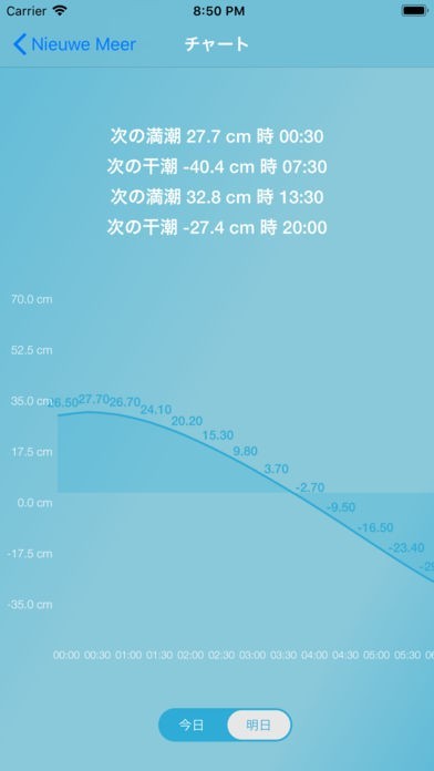 アプリを使えば30分ごとの潮汐予報を見ることができます。30分ごとに最新情報が更新されるので、正確な潮汐予測が手に入ります。漁の最中に最新予測をチェックすることができます。