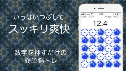 ランダムに表示される1から25の数字が書かれたプチ(プチプチ)を順番にツブしてください。