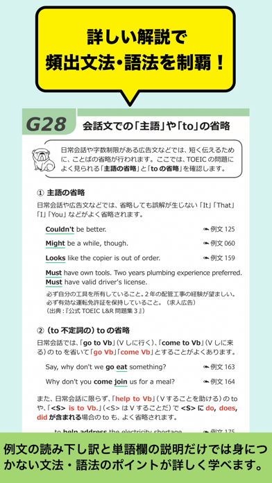 ●TOEICの公式問題集を徹底的に分析して例文を作成しているので、学習内容に全く無駄がない