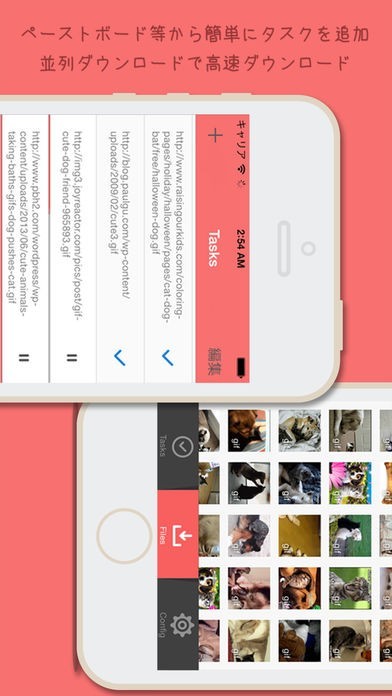 ツールを起動した状態でブラウザで希望のサイトへアクセス。URLをコピーすると「AddTask」通知が選択できるようになるためタップします。すると解析が始まってサイトデータを選択・開示することで含有するイメージファイルを総チェックできるようになります。