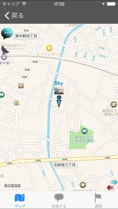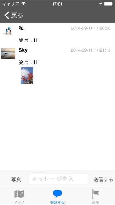 任意の場所に住所や写真を貼り付けることができ、登録した友人たちと共有することが可能です。マップ上にメッセージを書いて表示さて、待ち合わせ場所や目的地を教えましょう。