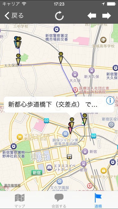 自分の現在地店から友人までのルートを表示でるため、会いたいと思った時にすぐに行けます。周囲の施設が検索できるので、どこかで待ち合わせることも可能。リアルタイムで相手の場所が表示できるので、すれ違いもありません。