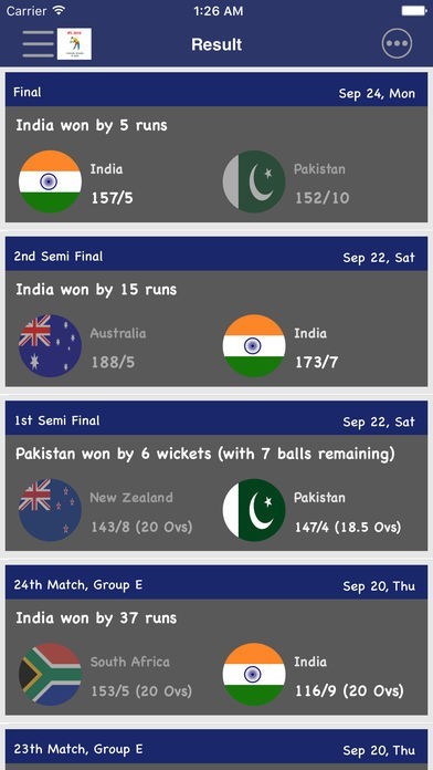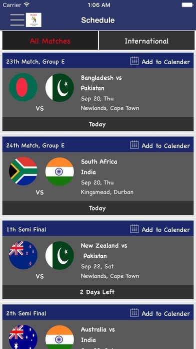 クリケットのワールドカップの試合内容やスケジュールを調べることができます。カレンダーに追加することもできるので、注目している試合を見逃してしまうことを防げます。