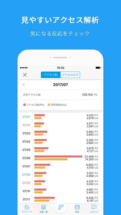 このアプリは、とにかく簡単にブログを開設することが出来るのですが、それだけではなく機能も豊富であるので、あまりインターネットに詳しくないような方でも本格的なブログを作り出すことが出来るので、そのような方に向いています。 また、簡単にツイッターのように作成することもできますし、「写真フィルター」を活用して美しくみえるように加工することも出来るので、見た目にこだわりたいような方にもピッタリですし、デザインを250種類の中から選べるので、雰囲気をガラッと変えたりすることも出来ることから、自分が思う通りのものがきっと見つかることでしょう。 それ以外にも、毎日の「アクセス解析」を細かくチェック出来たり、棒グラフによって一目で把握することが出来ることから、どのような内容のものがよく閲覧されているのかなどという研究に使ったりすることも出来ます。