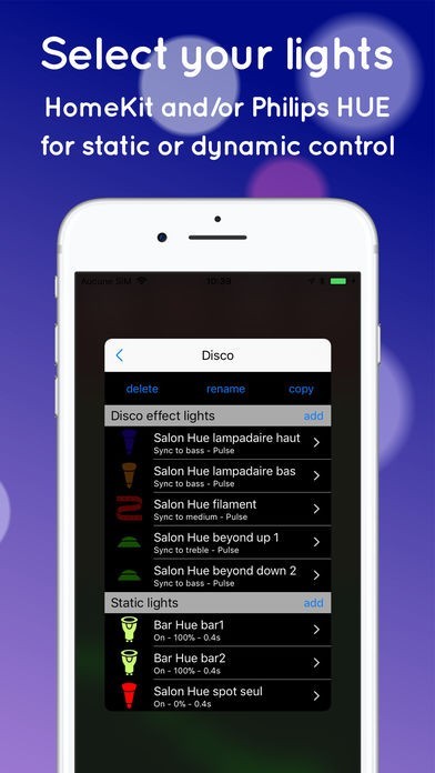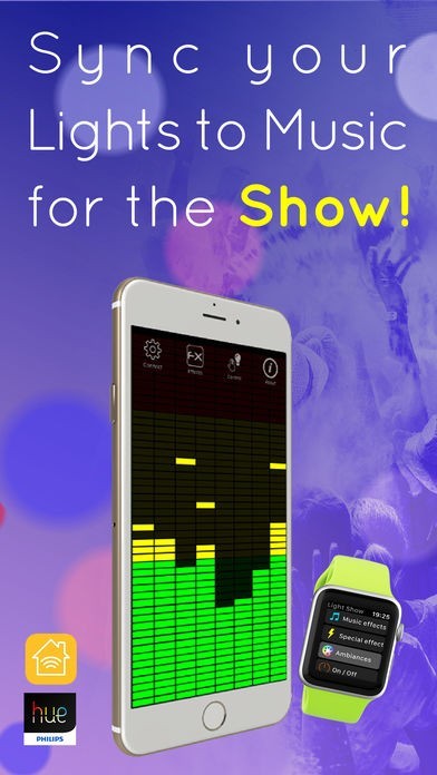 - The app runs in the background with Philips Hue lights only (HomeKit does not allow light control from the background).
