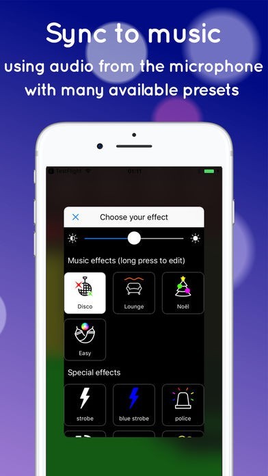 - The app listens to your music using your iPhone or iPad microphone; you have to play music with another device. For a light show with music from your library, try our Infinite Music app.