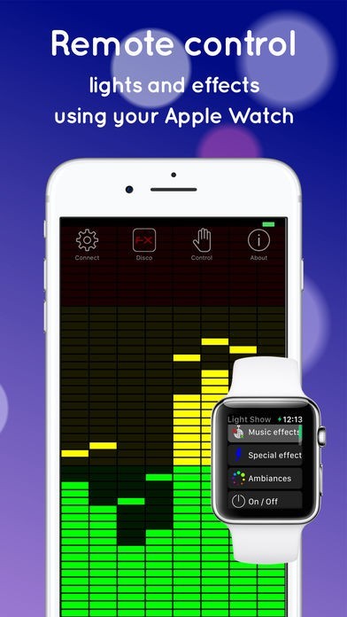 Launch lighting scenes and special effects (strobes, waves, flows..) from your iPhone / iPad or remotely from your Apple Watch.