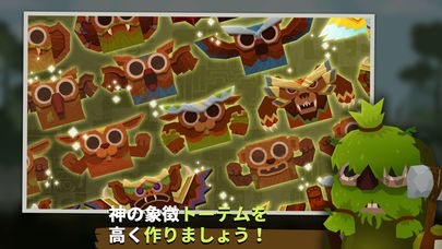 神の力を上げるためにトーテム作りが必要になってきます。競技場で戦士をバトルさせた時に勝利すると材料が獲得できるので、その材料の種類や量を変えながらトーテムを作りましょう。仮面・胴体・翼のパーツに分かれています。たくさん作って強化していきましょう。不必要なトーテムは販売することも可能です。