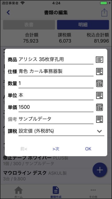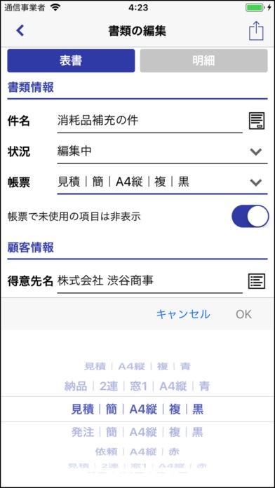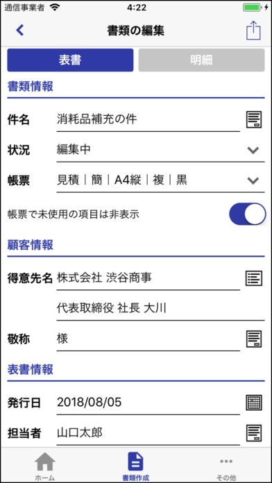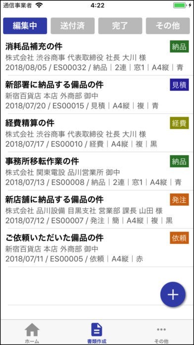 納品書や発注書等の書類が素早く作成出来るスマホアプリ