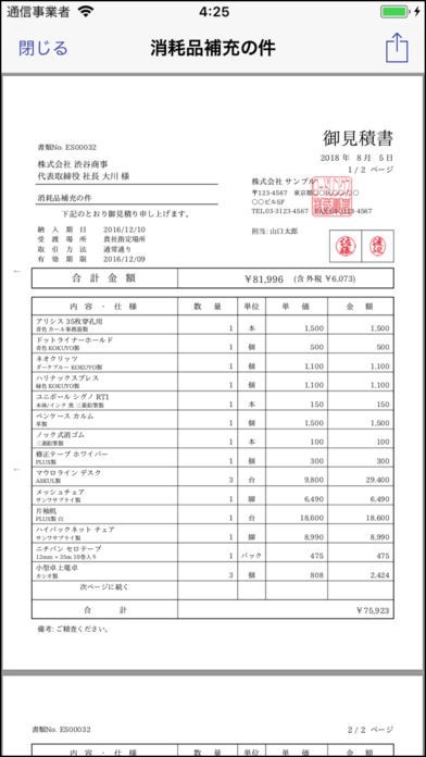 見積書や請求書を素早く作成、きれいに印刷 Estilynxのスクリーンショット